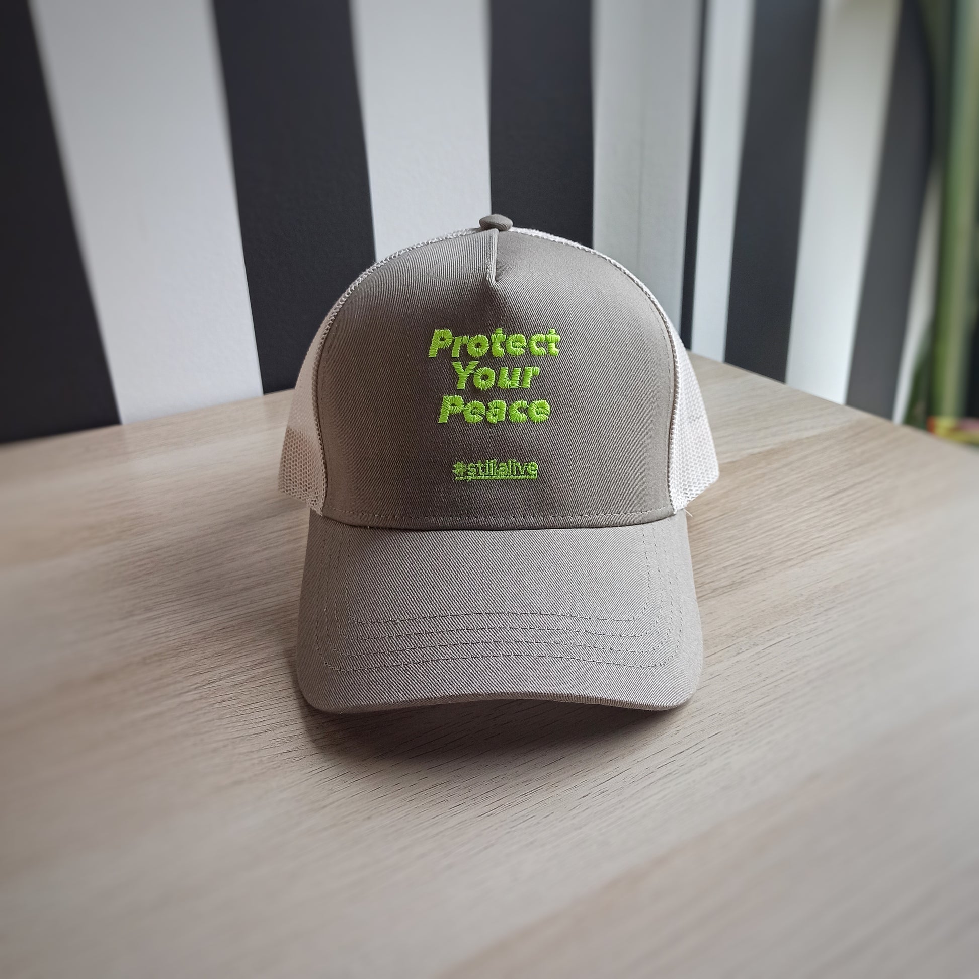 Gorra trucker beige "Protect your peace"