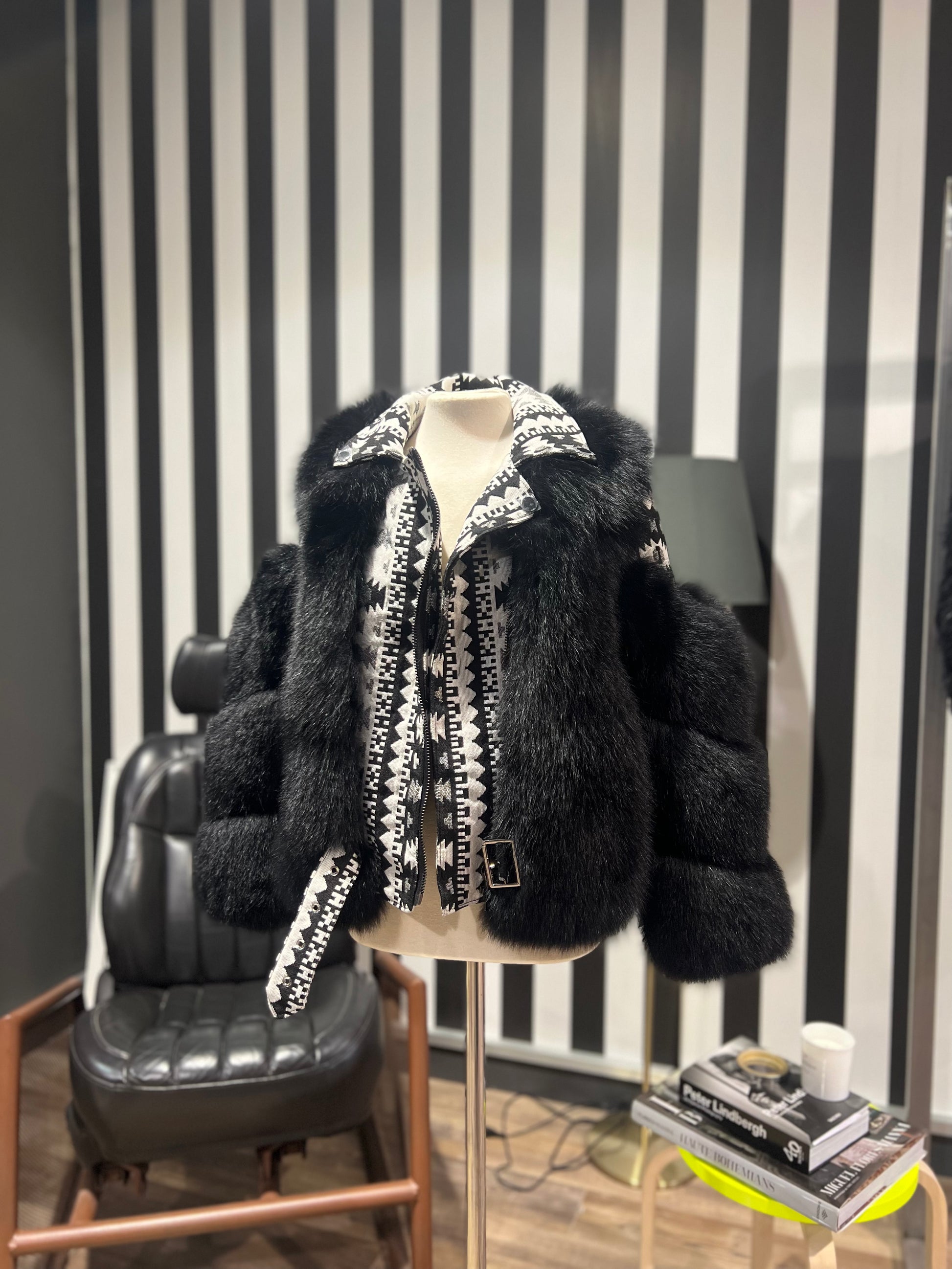 Chaqueta perfecto etnica de piel desmontable las mangas